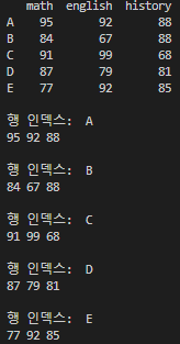 데이터프레임의 행을 하나씩 반복해서 얻고 싶을 때는 df.iterrows()를 사용할 수 있습니다.