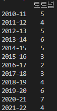 index=['2010-11', '2011-12', '2012-13', '2013-14', '2014-15', '2015-16', '2016-17', '2017-18', '2018-19', '2019-20', '2020-21', '2021-22'])