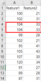 df = df.drop_duplicates(["features2"])