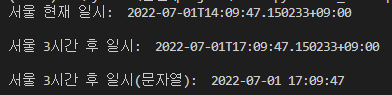 print("서울 3시간 후 일시: ", now_plus_3hours, '\n')