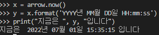 now = arrow.now('Asia/Seoul') # 서울 현재 일시 얻기
