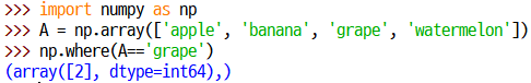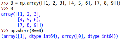 np.where(넘파이배열==찾을값)
