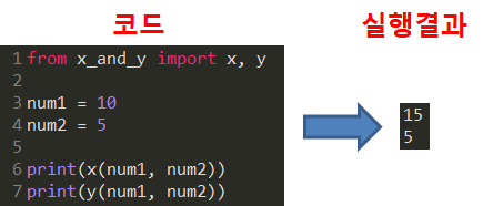 x_and_y.py 파일 전체를 import 한 후에 그 안에 있는 함수를 x_and_y.x(), x_and_y.y()의 방식으로 호출해서 사용하는 방법입니다.