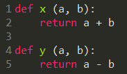 오늘은 다른 파일에 정의되어 있는 함수를 가져와서 쓰는 방법에 대해 다루도록 하겠습니다. 설명을 위해 저는 다음과 같이 x_and_y.py라는 파이썬 파일에 x라는 함수와 y라는 함수를 정의했습니다. x라는 이름의 함수는 두 수를 더해주는 기능을, y는 두 수를 빼주는 기능을 갖고 있습니다.