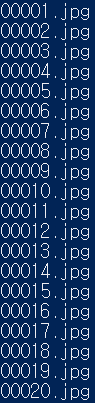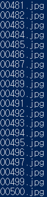 이것을 응용해서 만약에 자리수가 5이고 00001.jpg부터 00500.jpg까지라면 다음과 같이 코드를 수정하시면 됩니다.
