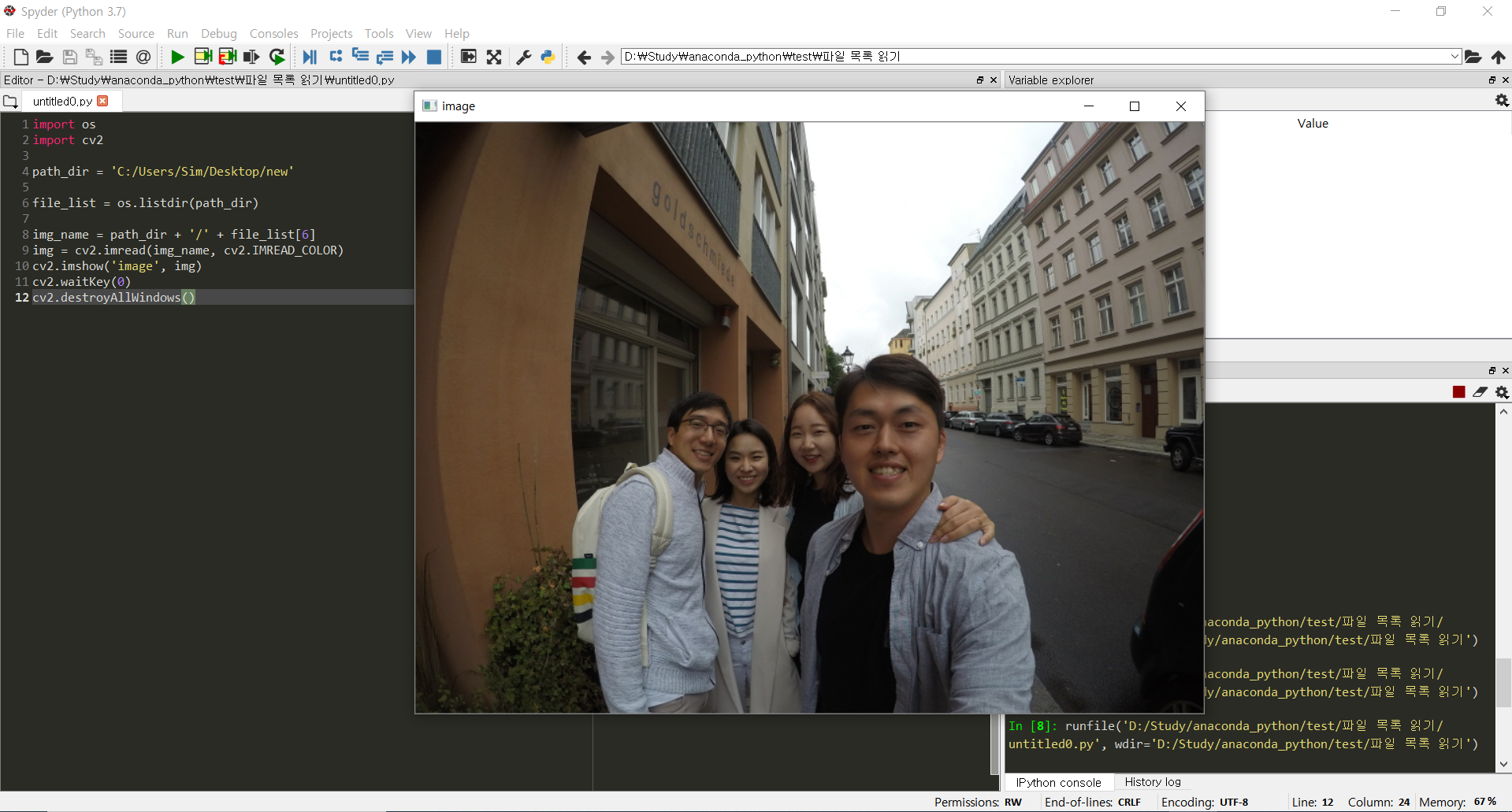 C:\Users\Sim\Desktop\new 와 같은 이름의 경로에 있는 파일의 목록을 읽어보겠습니다. 파이썬에서 경로를 입력할 때 주의하실 것은 \을 /으로 바꿔주셔야 한다는 점입니다. 저는 파이썬 표준 라이브러리 중 하나인 os의 listdir 함수를 사용했습니다.