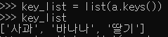 딕셔너리 key 리스트 생성