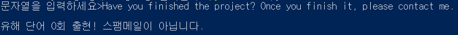 한번 위 예제 코드가 스팸메일을 잘 찾아내는지 한번 테스트해보겠습니다.