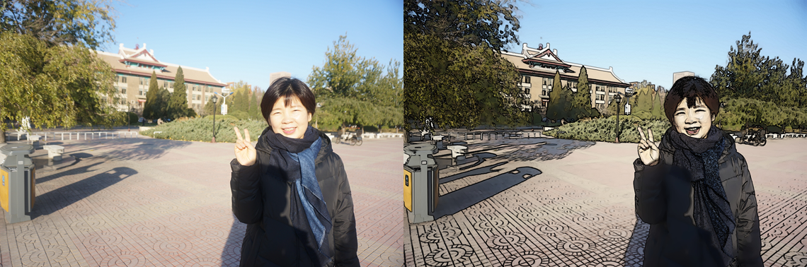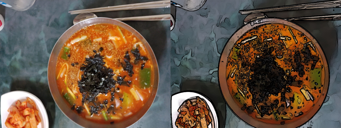 진짜 뭔가 그린 것 같은 이미지가 되었죠? ㅎㅎ 이 방향(cartoonization)을 연구하는 사람도 꽤 많은 것 같습니다. 물론 요즘은 딥러닝 기반의 알고리즘들이 쏟아져 나오고 있고요.