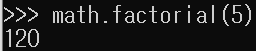 5!를 구하고 싶으시면, math.factorial(5)로 코딩하시면 됩니다.