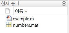 그리고 실행했더니 numbers라는 변수를 담고 있는 numbers.mat이라는 현재 디렉토리에 생성되었습니다.