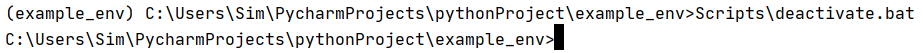 일단 지금 활성화되어 있는 example_env를 비활성화시키겠습니다. Scripts 내 deactivate.bat을 실행하면 됩니다.