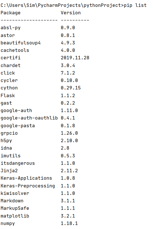 보시다시피, 제가 설치한 패키지들이 나열되어 있습니다. 정확한 버전까지 명시되어 있고요.