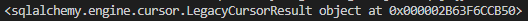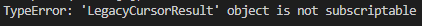 LegacyCursorResult 객체는 subscriptable이 아니라고 합니다. 제 경험상 이런 에러가 뜨는 것들은 인덱싱이나 슬라이싱 지원이 안되는 객체들입니다.