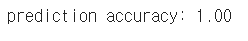 print("prediction accuracy: {:.2f}".format(np.mean(y_pred == y_test))) # 예측 정확도