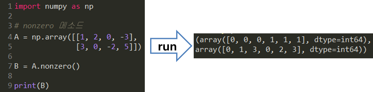 18. nonzero 메소드: 0이 아닌 원소들의 인덱스 반환