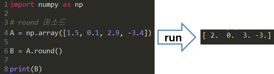 배열의 요소들이 반올림된 것을 확인하실 수 있습니다.