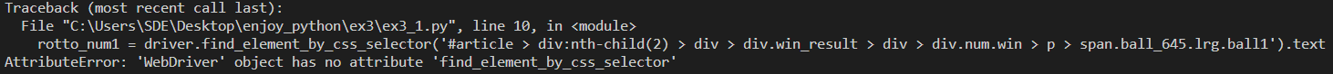 파이썬 라이브러리는 계속해서 발전되어 갑니다. 셀레니움 라이브러리를 만들고 유지보수하고 있는 개발자들이 기존 find_element_by_css_selector에 부족함을 느꼈기 때문에 개선을 한 것입니다. 우리는 이런 경우 당황하지 말고, 기존의 코드를 잘 수정하면 됩니다. 그렇지 않으면 우리의 코드, 우리의 프로그램은 곧 생명을 잃고 말 것입니다.