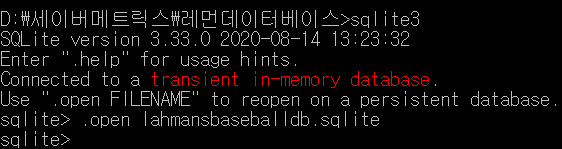 먼저 sqlite3 프로그램을 실행한 다음에 레먼 데이터베이스를 열겠습니다.