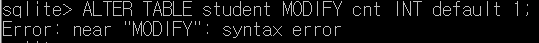 sqlite> ALTER TABLE student MODIFY cnt INT default 1;