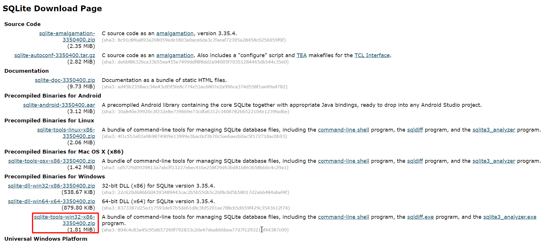 SQLite Download Page