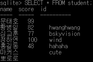 sqlite> SELECT COUNT(name), COUNT(score), COUNT(id) FROM student;