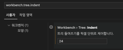 2. workbench.tree.indent를 설정 검색창에 입력합니다.